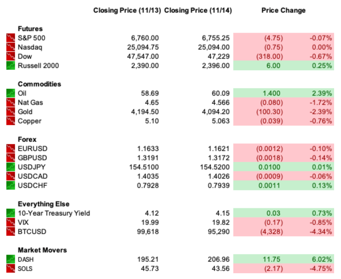 Markets firm up into the weekend as AI stabilizes and tariff headlines swirl, but the data blackout keeps traders flying blind.