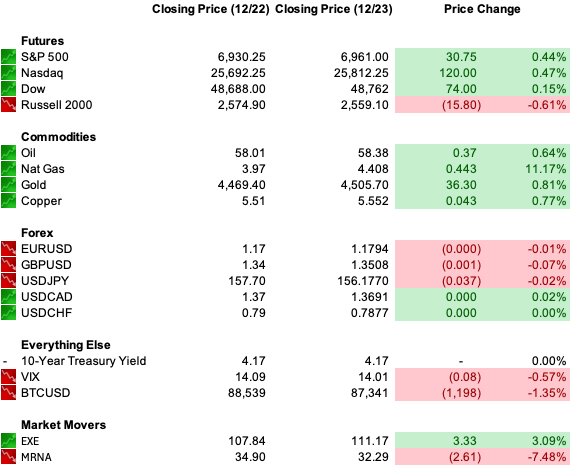 U.S. equities closed the afternoon at fresh record highs, extending the grind higher into a holiday-thinned tape.