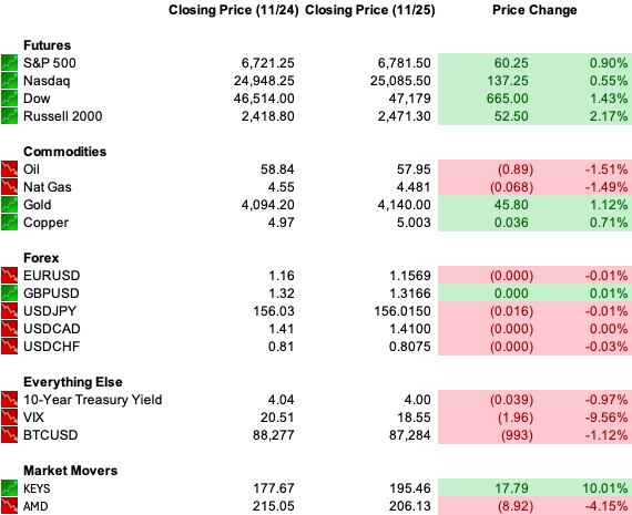 The rate-cut narrative hardened, tech held leadership despite rotation under the surface, and cyclicals added support at a key moment for sentiment.
