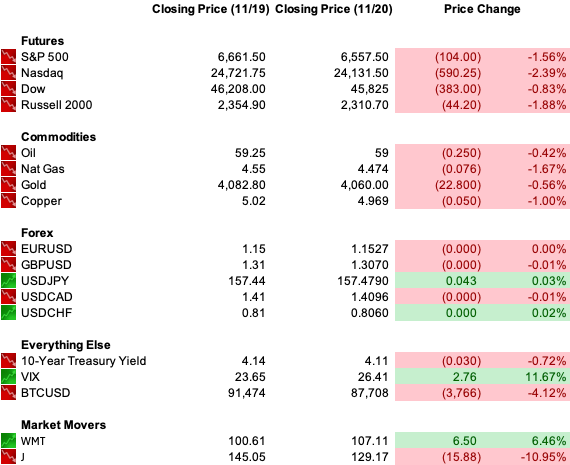 Retail earnings, early holiday signals, and the shifting rate path will determine whether today was a shakeout… or the start of a broader rotation.