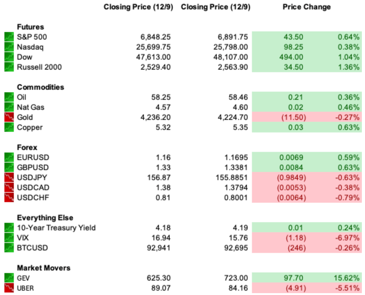 Economic data was light, but expectations weren’t: traders leaned into the idea that the door for cuts in 2026 remains open, even if the Fed won’t say so outright.