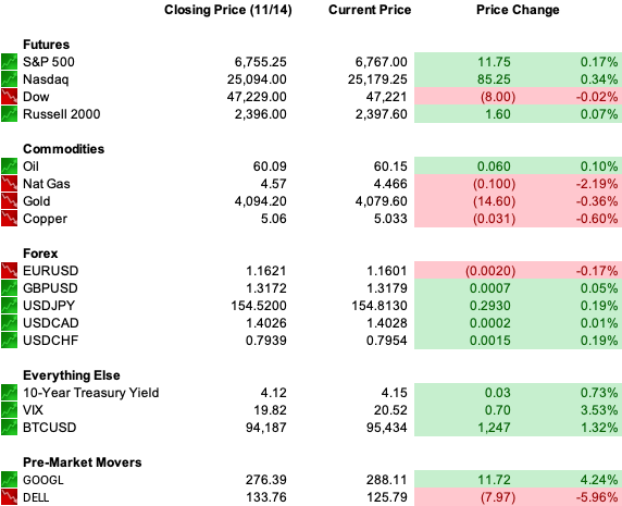 Bond yields drifted higher into the weekend and Fed officials continued to lean against expectations for a December cut. Futures now assign roughly a forty-five percent probability to a move next month, marking a significant reset from the near-certain expectations that followed October’s meeting.
