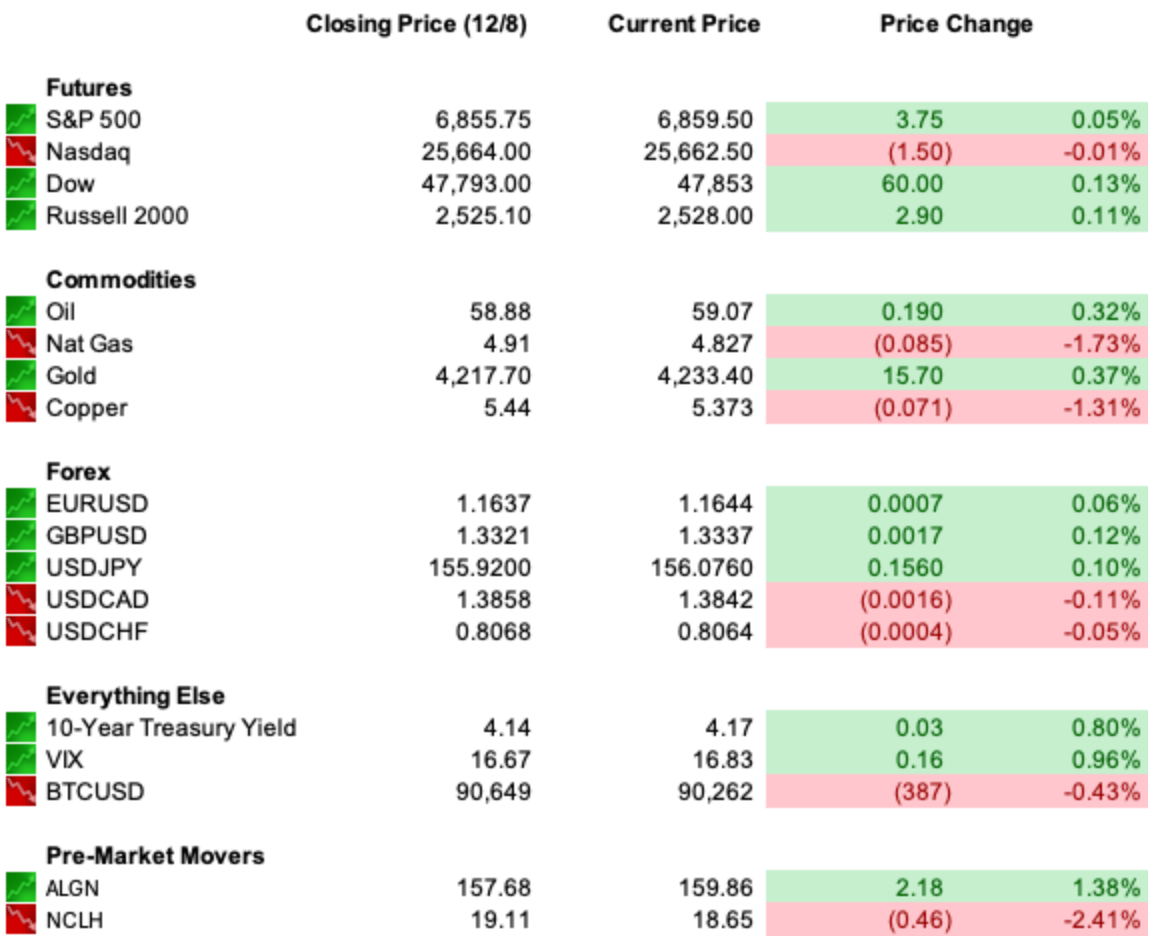Futures point to a flat open after Monday’s pullback stalled just shy of recent highs. The S&P 500 remains within a fraction of its peak as investors refuse to front-run what they already assume is coming at the policy announcement.