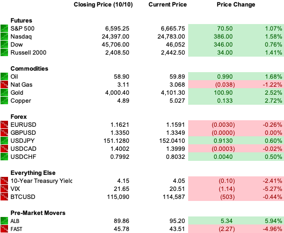 Geopolitics remain volatile, China’s trade moves, Gaza’s cease-fire, and Trump’s signals to Moscow all hang over the tape, but the broader tone leans toward stabilization rather than crisis.