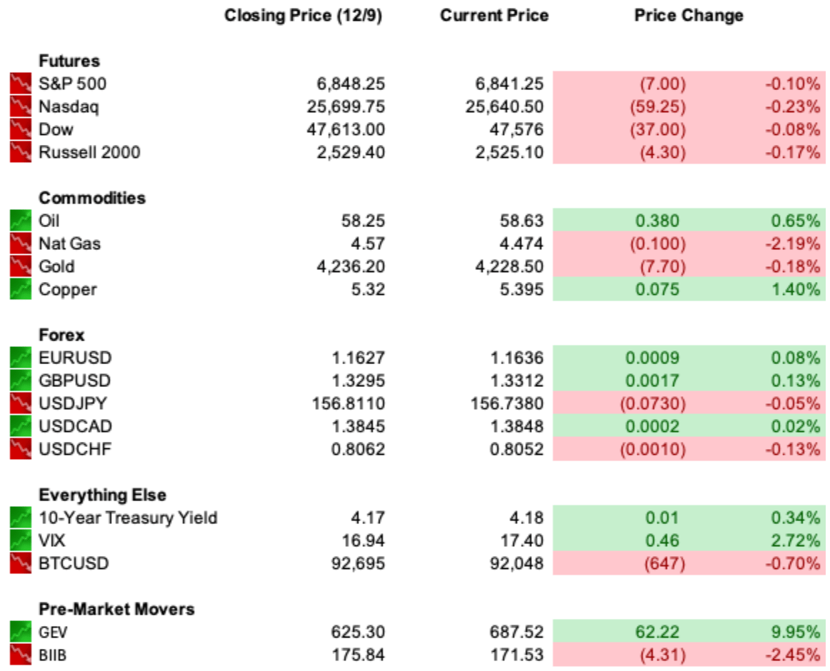 The Federal Reserve delivers its final policy decision of the year this afternoon. The market assigns an almost 90 percent probability to a quarter point cut into the 3.50 to 3.75 percent range.