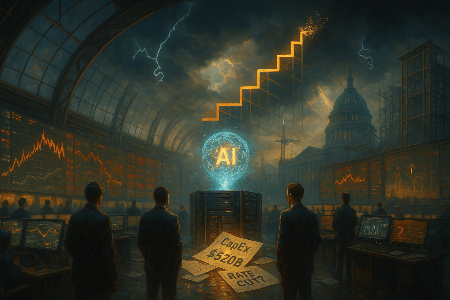 Futures point lower across the board, Nasdaq down 1.3%, S&P 500 off nearly 1%, as traders weigh record capex against fading visibility on growth.